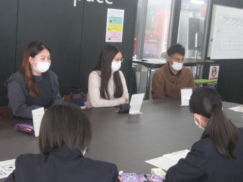 11/12(木)、長崎県立長崎東高等学校生徒4名が「探究フィールドワーク」実施のため本学を訪れ、留学生3名に、出身国(中国/韓国/ネパール)での教育等についてインタビューがなされ、留学生は親身に答えていました。また、最後に留学生から高校生へ質問がなされお互いの国について理解を深めることができました。