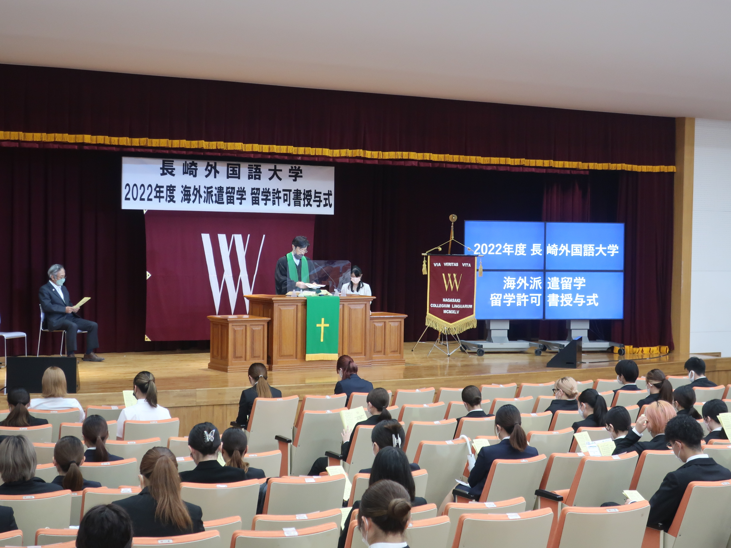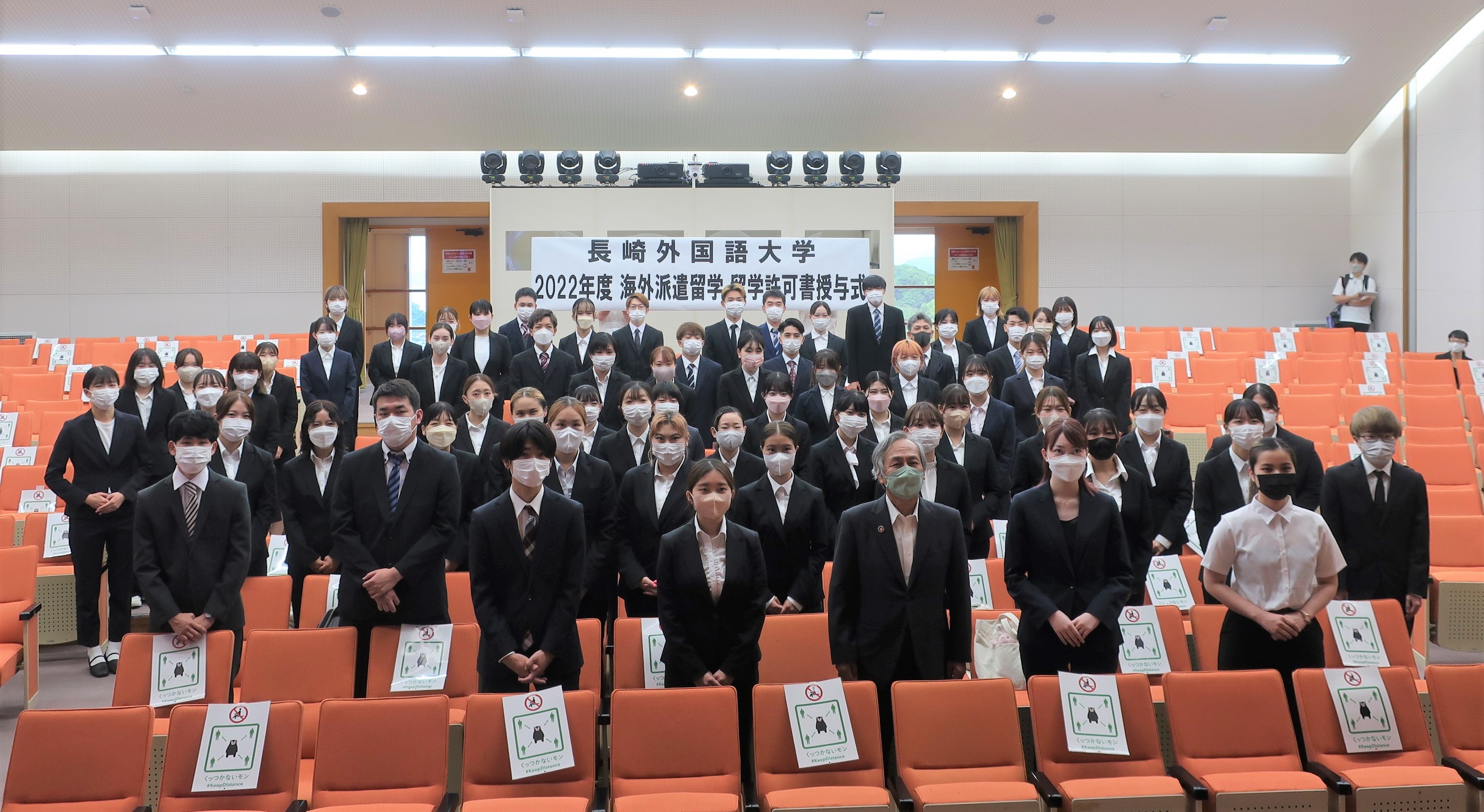2022年8月以降、海外の協定校へ留学する学生約70名の留学許可書授与式が行われました。