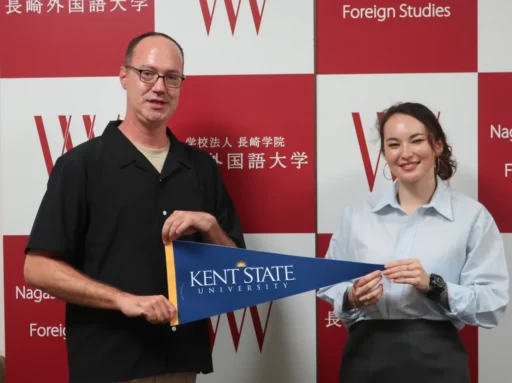 2025年10月16日、本学の協定校であるケント州立大学(アメリカ・オハイオ州)から、Angela Dayさん(Assistant Director, International Admissions)が来校されました。ケント州立大学大学とは、2018年10月に協定を締結して以来、活発な交流を行なっています。