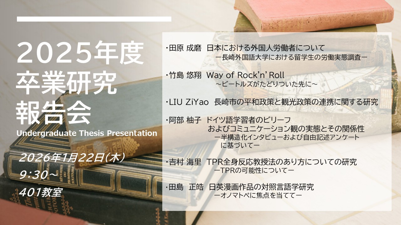2026(令和8)年1月22日(木)、本学において、今年度の「卒業研究報告会」が開催されました。