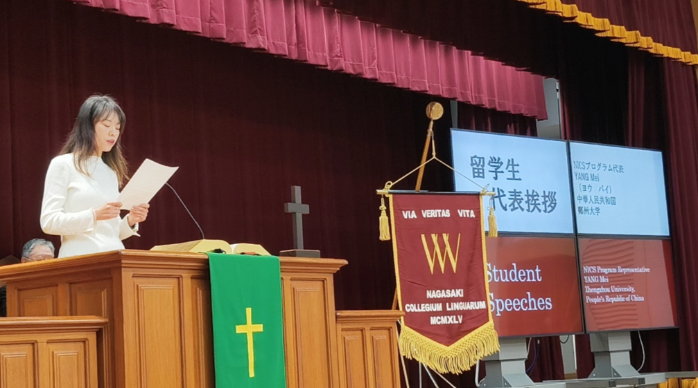 ヨウさんは、長崎の歴史や文化に惹かれて本学を留学先に選び、授業や日常生活を通じて、物事を自分自身で考える姿勢が身についたことや、街で感じた平和と人々の温かさが心に残る思い出となったと語りました。